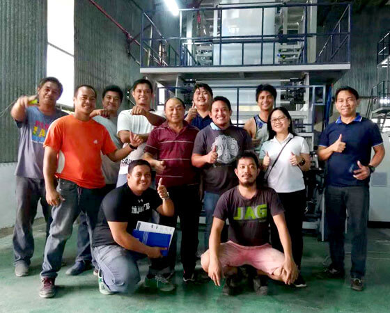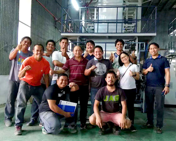 2018年,菲律賓客戶訪廠并建立信任合作,首次購買6臺(tái)吹膜機(jī)(ABC,ABA,AB, twin die等),主要生產(chǎn)香蕉袋子等。如今機(jī)器在客戶工廠運(yùn)轉(zhuǎn)情況良好,使客戶在當(dāng)?shù)厥袌?chǎng)競(jìng)爭(zhēng)占了一席之地。