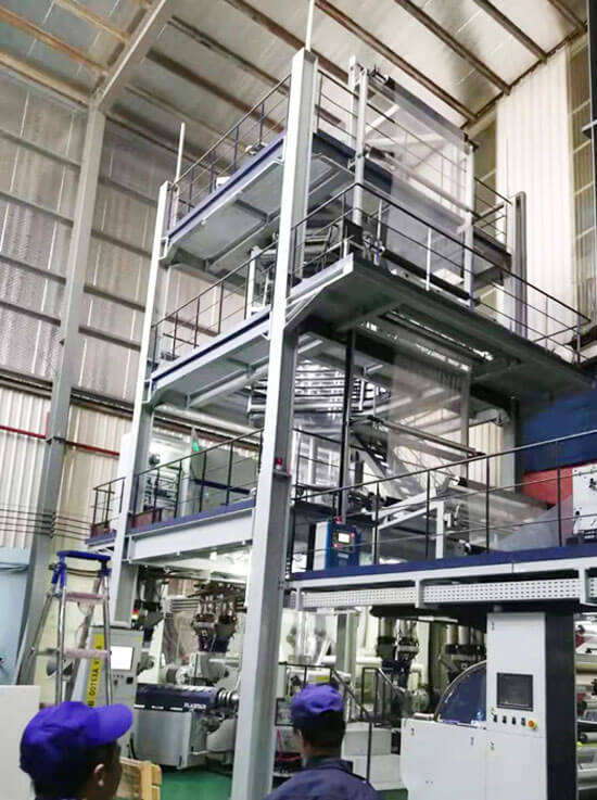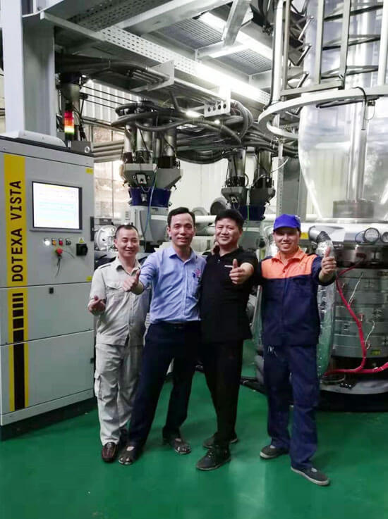 一家越南大型綜合性吹膜制袋包裝企業(yè),有30多年歷史,之前從我們PLASTAR公司購買過2臺高速吹膜機。第二次合作在2019年7月,該企業(yè)采購了這臺ABCDE五層共擠POD非阻隔1600mm吹膜機。