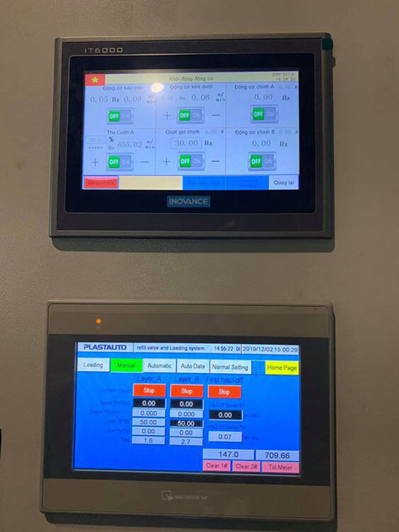 先進的自動化模塊:ABA三層共擠吹膜機生產線具有先進的自動化功能,集中供料、配料、克重控制等。全部集成于觸摸屏集成控制。使操作更為簡便,成產效率提升。